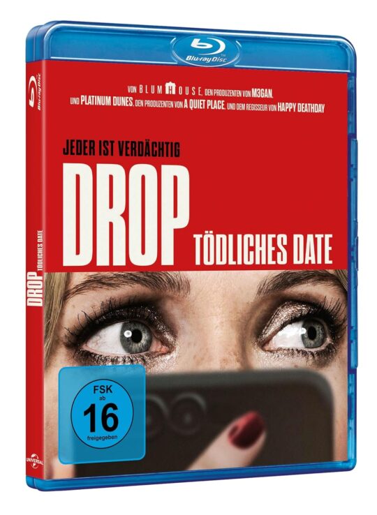 Ab sofort ist der Kino-Thriller Drop – Tödliches Date auch auf DVD und Blu-ray erhältlich. Die Low Budget-Produktion, eine enge Zusammenarbeit zwischen Blumhouse Productions, Platinum Dunes und Universal Pictures, verwandelt eine App in ein tödliches Katz- und Mausspiel.